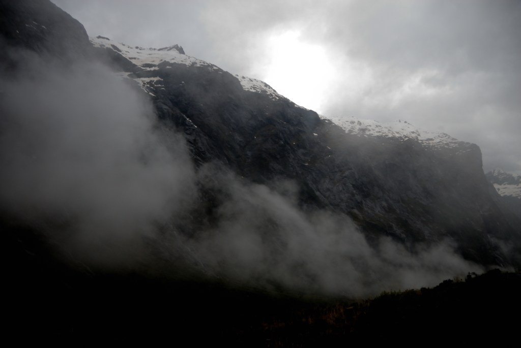 אחרי השיט, הורדנו שלוש נוסעות שהחליטו לבצע טרק של שלושה ימים בשם Routeburn Track שהוא אחד הטרקים הידועים של ניו זילנד. גם במקרה הזה מזג האוויר היה גרוע – הגשם התחיל ביום שבו הנשים יצאו לטרק, והסתיים כמה שעות אחרי שהן הגיעו ליעד שבו הן פגשו אותנו. הפעם הן יכלו לבצע את הטרק, אבל במקום טרק שבו נהנים מנוף – הוא הפך לטרק אתגרי בהתמודדות עם הגשם. אני מניחה שהן בחרו לצאת אליו כי הן ידעו שהסיכוי שלהן להגיע שוב לניו זילנד היה נמוך ולכן העדיפו לא לוותר גם אם התנאים לא אידאליים.