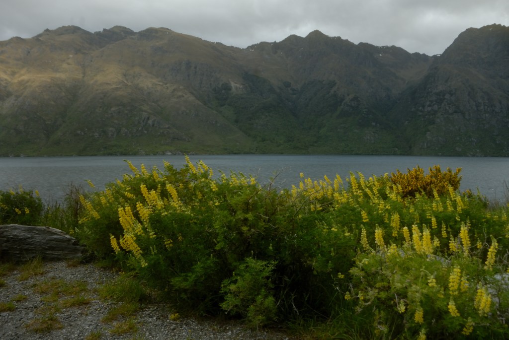 והנופים אכן מדהימים – אבל שים לב שבמכה תמונות, בעיקר סביב האגמים – ישנם תורמוסים צהובים שהם כמובן מין פולש לאיזור ששוחחנו עליו ברשומה הקודמת שלי, ואפשר לראות עד כמה הוא הפך להיות נפוץ בניו זילנד.