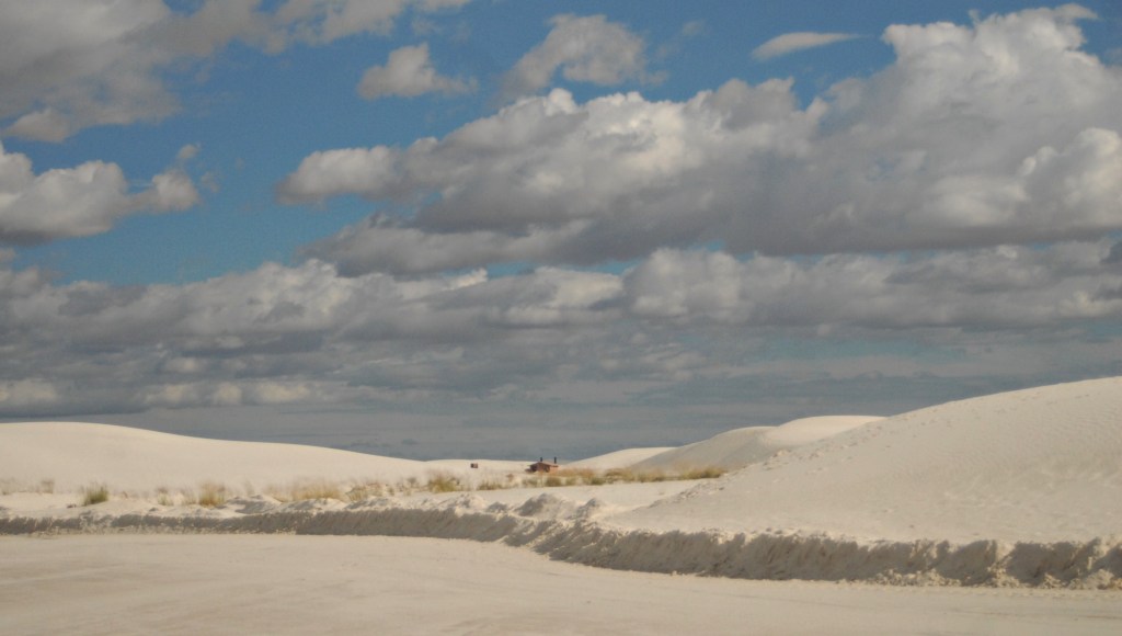 החול כנראה לבן יותר… ויש את החוויה של לעבור באיזור צבאי אמריקני (ועוד כזה שבו נבדקה הפצצה הגרעינית הראשונה, אתר שגם בו אפשר לבקר באותה הזדמנות).
