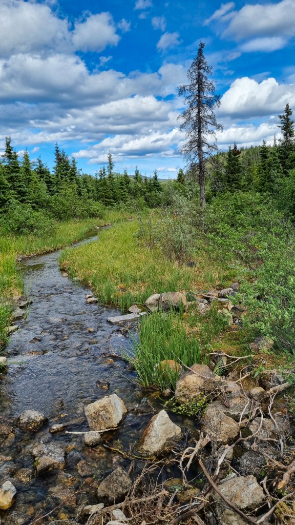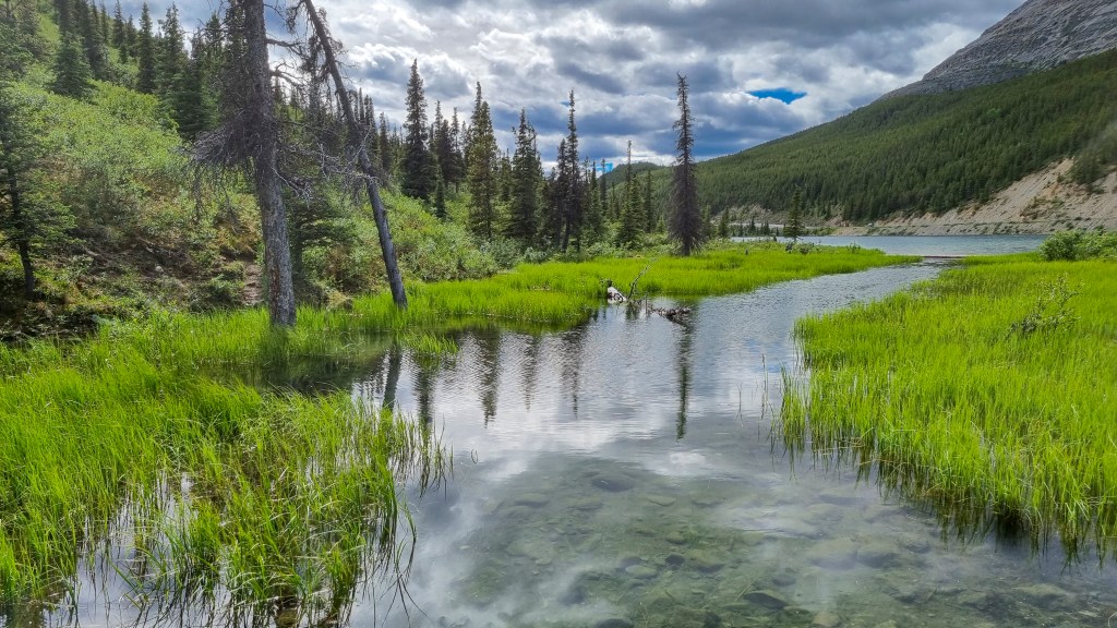 לכן החברה ארגנה מסלול חלופי שכלל כמה מקומות אחרים – שבתיאוריה היו אמורים לעניין אותי יותר כי לא הייתי בהם. אבל באיזור הראשון שבו היינו, המסלולים פשוט היו קשים מידי. עשינו קמפינג בפארק בשם Muncho Lake Provincial Park שממנו היתה גישה לכמה מסלולים ב Stone Mountain Provincial Park שכמו שנתן להבין מהשם – הוא פארק הררי, והמסלולים בו הם כולם בעליה.