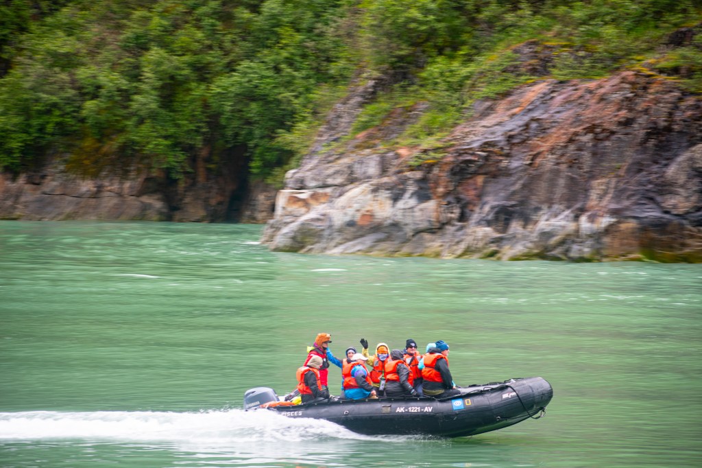 אבל אחת המטיילות עשתה מחקר לפני שהענו לעיר וסיפרה לנו על עוד פעילות שנשמעה לה מעניינת: שייט לפיורד ליד העיר בשם tracy arm fjord שבסופו יש קרחון שמאוד מתקרבים אליו. היה קצת בלגן בארגון של הפעילות, והמטיילת המארגנת היתה בטוחה שההזמנה שלנו לא התקבלה ולכן כולנו הגענו למשרדים כדי להזמין אותה מחדש רק כדי לגלות בסופו של דבר שההזמנה כן התקבלה. כך שבסופו של דבר הדברים הסתדרו, ובילינו יום שלם בכיף. האיזור של הפיורד היה מאוד יפה עם המון קרחונים, המון כלבי ים – ונופים מהממים, והאווירה היתה כיפית כי כבר נוצר קשר טוב בין המטיילים אבל הטיול עדיין לא הסתיים אז עדיין היינו מגובשים.