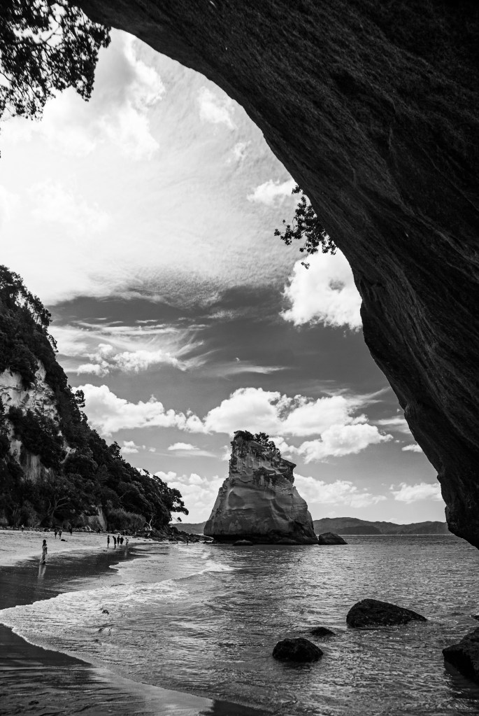 המסלול הראשון שלנו היה ללכת לחוף של Cathedral Cove, ואז גיליתי שלוח הזמנים שלנו מאוד צפוף – ושאני הולכת לאט משמעותית משאר הקבוצה שלי שממש רצה לפני.