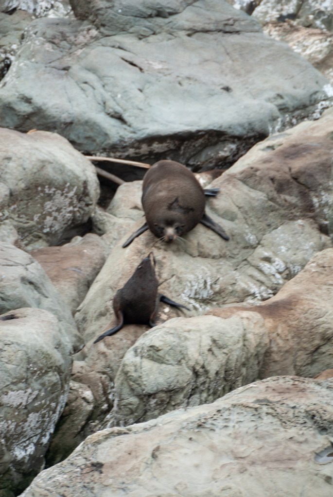 לקראת הצהרים המדריך הבכיר אסף אותנו, והתחלנו לנסוע לאורך החוף לכיוון העיר קאיקורה. עצרנו בכל מיני נקודות יפות לאורך החוף, כולל בנקודה שבה ראינו כלבי ים.