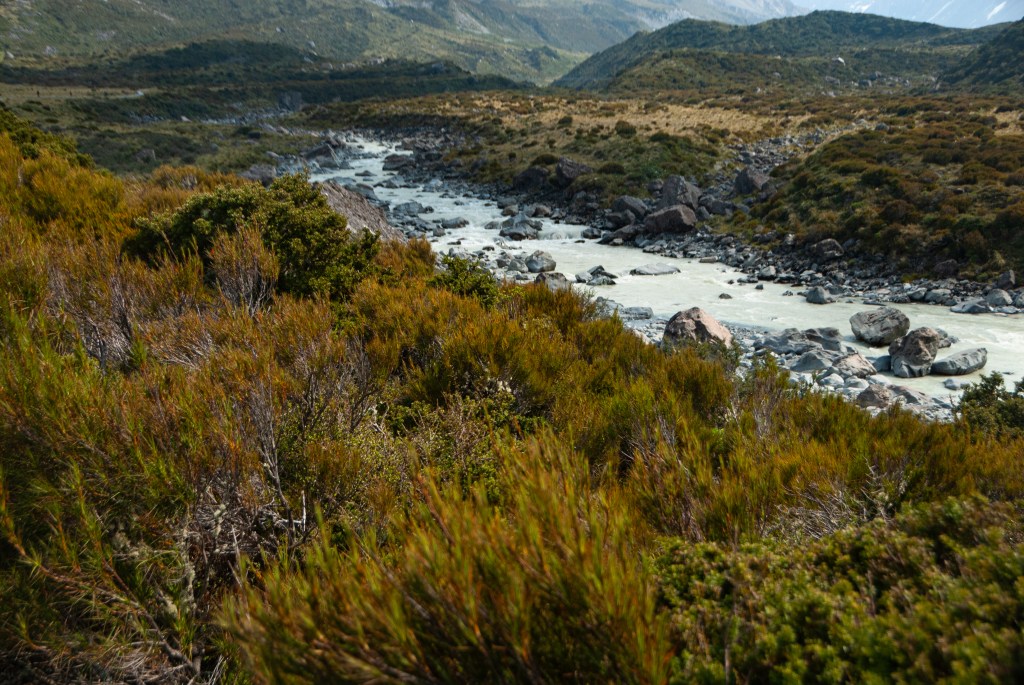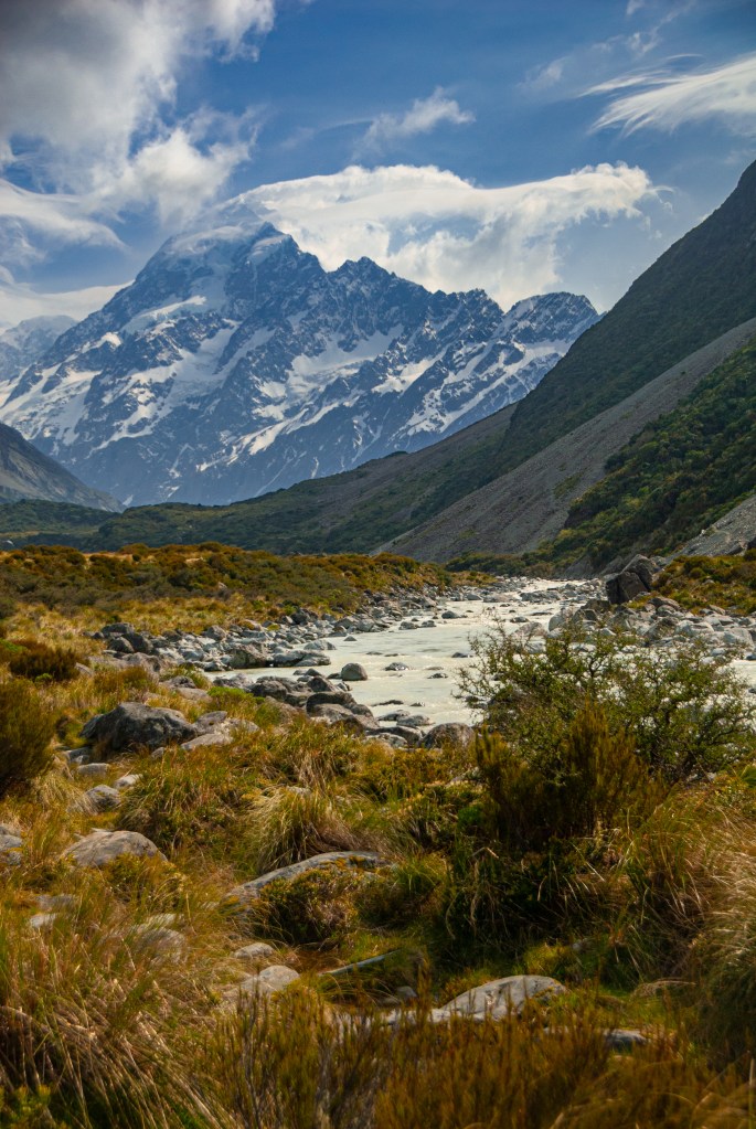 למדריך הבכיר שלנו כן היה חשוב להמליץ לנו להגיע לנקודה מסוימת במסלול שנמצאת אחרי החציה של הגשר השני במסלול – כי זו בעצם הנקודה שממנה ניתן לראות את הר קוק בצורה טובה. אני חושבת שהוא קצת התאכזב שלא הספקתי את מלוא המסלול, אבל באמת כנראה לא הבין שהעדפתי להנות בצורה יסודית מחלק מהמסלול ולצלם בשללוה מאשר למהר ולהזדרז רק כדי להספיק כמה שיותר מהמסלול…