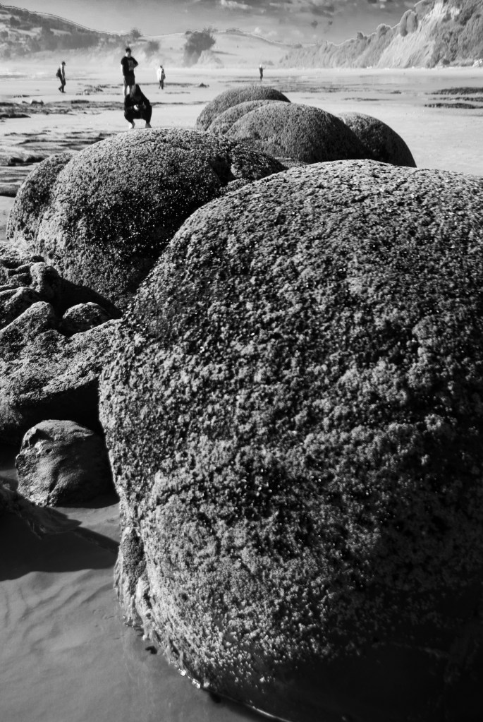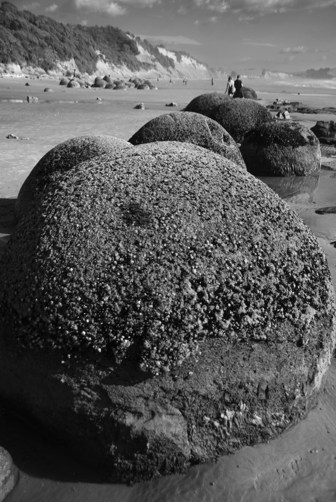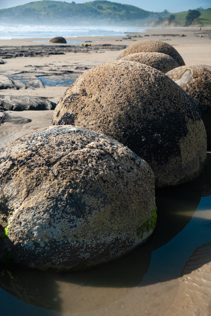 מוארקי בולדרס Moeraki Boulders הם סלעים גדולים ועגולים שנמצאים על אחד החופים של האי הדרומי. לא ממש ברור איך הם נוצרו או איך הם הגיעו לשם, ואפשר לראות אותם רק בזמן השפל.